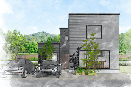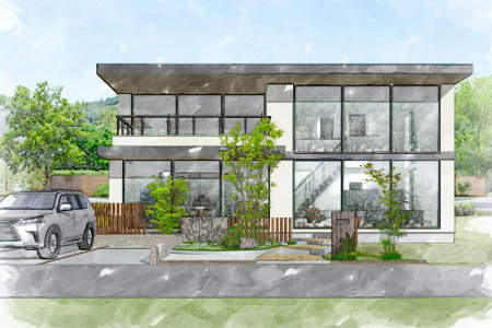 マドイエならオリジナルの住宅プランが1物件につき約7,000円で手に入ります。作成するイメージもガルバリウム鋼板や塗り壁、サイディングなどのおしゃれなデザイナーズハウス。人気の住宅プランをお手頃価格でご提案します。